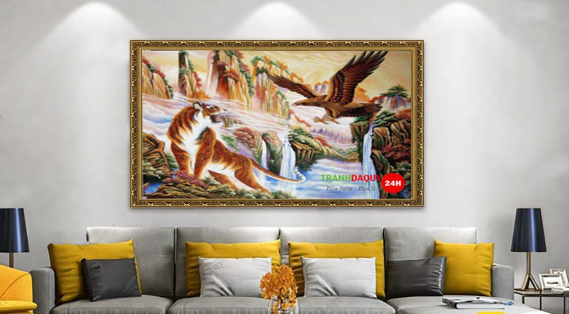 Đã từ lâu hổ và đại bàng là hai loài được mệnh danh: chúa tể của mặt đất - chúa tể bầu trời. Việc phối hợp hai hình ảnh này trong một bức tranh đá quý vừa mang lại hình ảnh tuyệt mĩ, vừa mang một ý nghĩa phong thủy rất tốt. Nếu bạn đang làm kinh doanh hoặc muốn con đường sự nghiệp của mình thuận lời thì đây là một bức tranh hoàn hảo không thể bỏ qua.