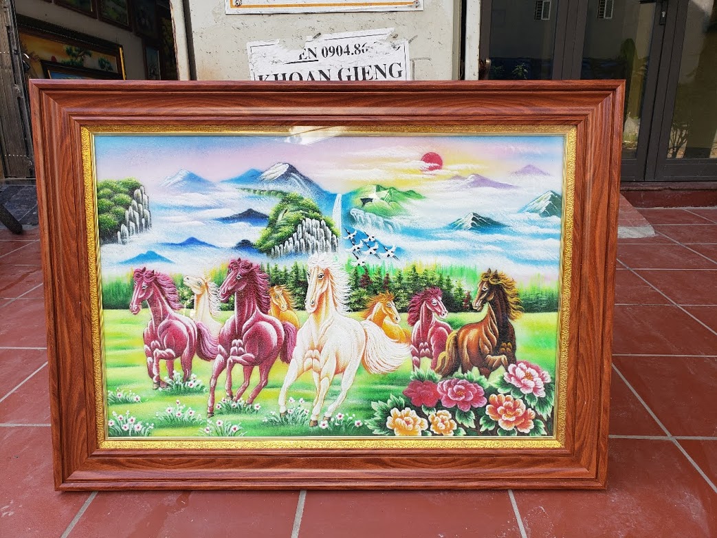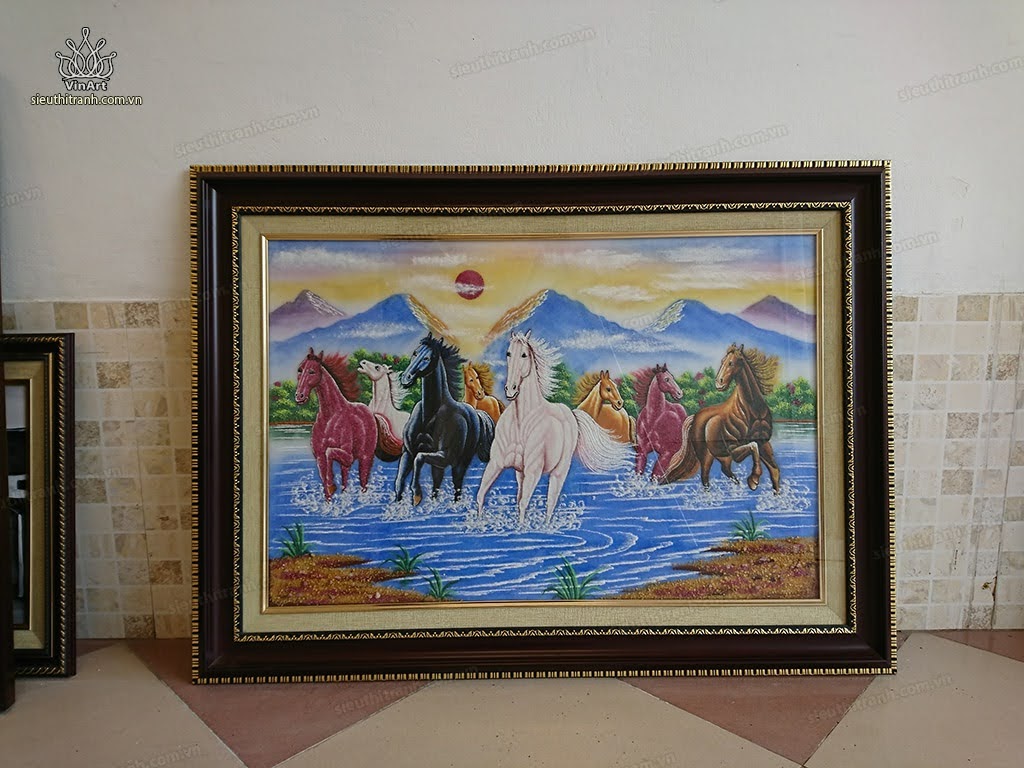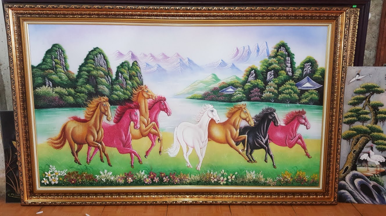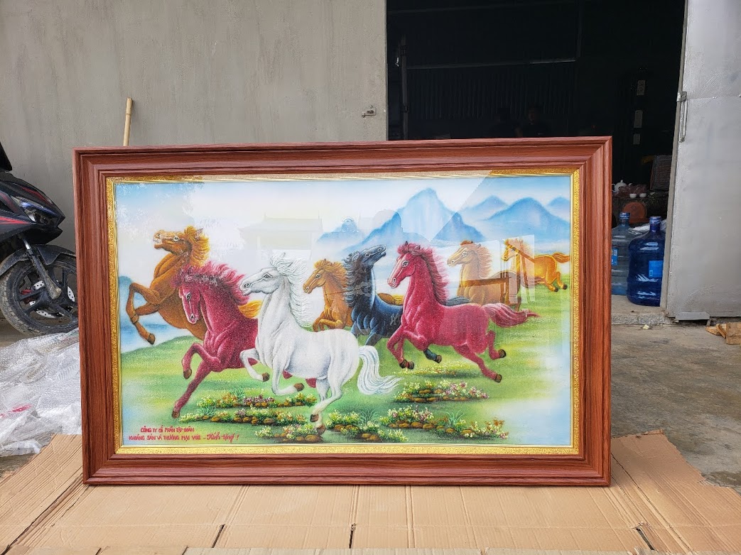Tranh đá quý ngựa mẫu mã đáo thành công tức thắng trận trở về bức tranh mong muốn làm gì được đó .con ngựa đại diện cho sự nhanh nhẹn, khoẻo khoắn với sức bền bỉ .. bức tranh được làm bằng đá quý nổi rất đẹp và ý nghĩa cho không gian treo