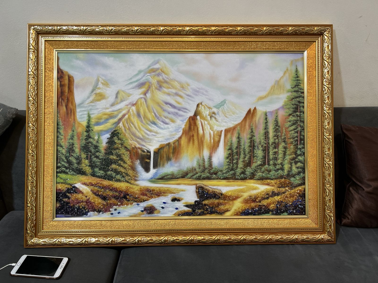 ảnh chụp thực tế mẫu tranh đá quý cao cấp núi non hùng vỹ.